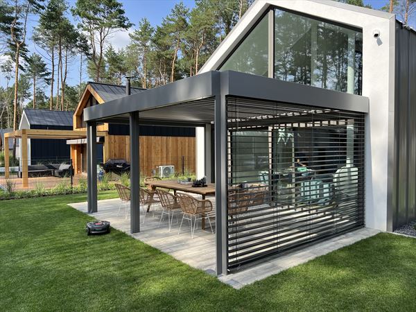 Firma oferuje również nowoczesne rozwiązania chroniące tarasy i ogrody przed nadmiernym nasłonecznieniem, wiatrem i deszczem. Są to pergole tkaninowe lub lamelowe – bioklimatyczne. Te wytrzymałe, stabilne konstrukcje wyposażone w dach z wodoodpornej tkaniny lub obrotowych aluminiowych lameli posiadają ukryte odprowadzenia wody i z powodzeniem wytrzymują ulewny deszcz, silny wiatr, a nawet śnieg. Dodatkowo wyposażone mogą być w osłony boczne takie jak: przesuwne panele szklane, żaluzje fasadowe, rolety typu screen, ruchome lamelki, a także w oświetlenie LED, promienniki ciepła, nagłośnienie i automatykę pogodową.